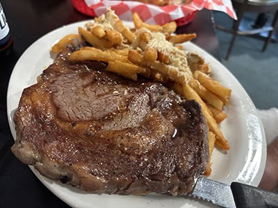 Stop by for On the Rocks Smoke House juicy brisket or ribeye steak!