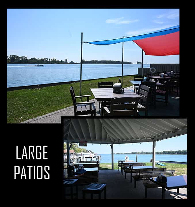 You may bring a boat and dock on the seawall alongside the restaurant. Use caution however, as we are located on the shipping channel where we have regular freighter traffic passing by.